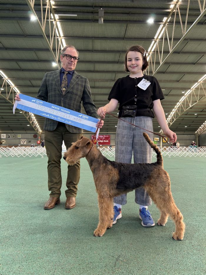 BIS at the Airedale Terrier Club of Victoria's Champ Show and Group 4th at the 2024 Sydney Royal Show.